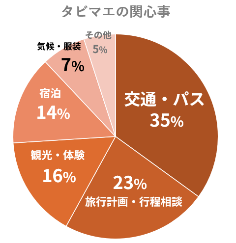 また、チケット予約(11%)やICカードの使い方(10%)、空港アクセス(7%)といった、現地での“移動安心感”を重視する質問も多く寄せられました。